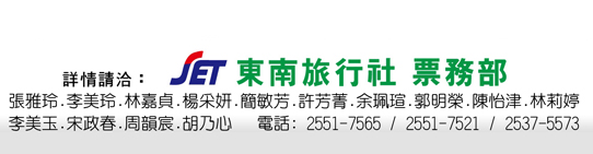 機位預訂:預定出發日一個月內方可預訂機位,機位確認後72小時內開票。