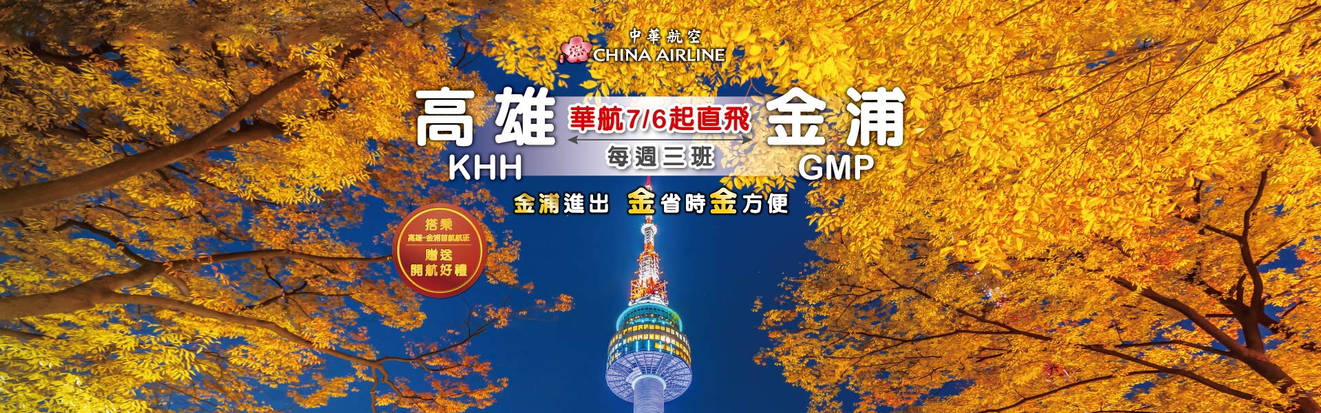 中華航空7月6日起高雄-首爾(金浦)航線開航,首三班航班(適用出發日:2023/07/06.07/08/.07/11)推出促銷票價,最低來回票價TWD8700元起(未稅)