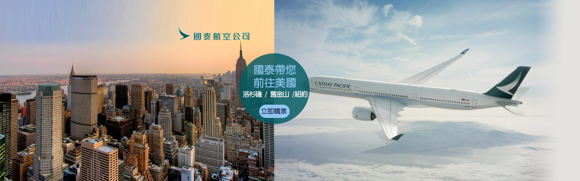 國泰航空提供由台灣(台北 、高雄) 當日轉機前往美國洛杉磯、舊金山、紐約之航班。