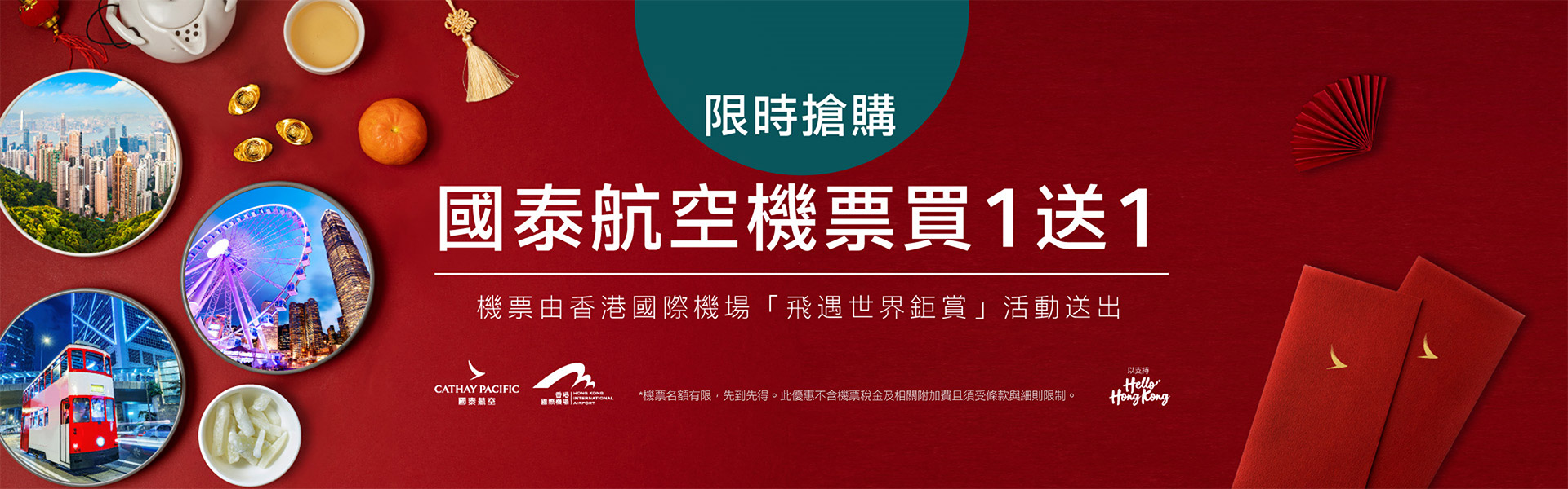 國泰航空推出『飛越世界鉅賞 香港買一送一』,說走就走,立即訂購!