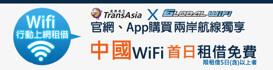 【復興航空買兩岸航線機票送WIFI一日免費】