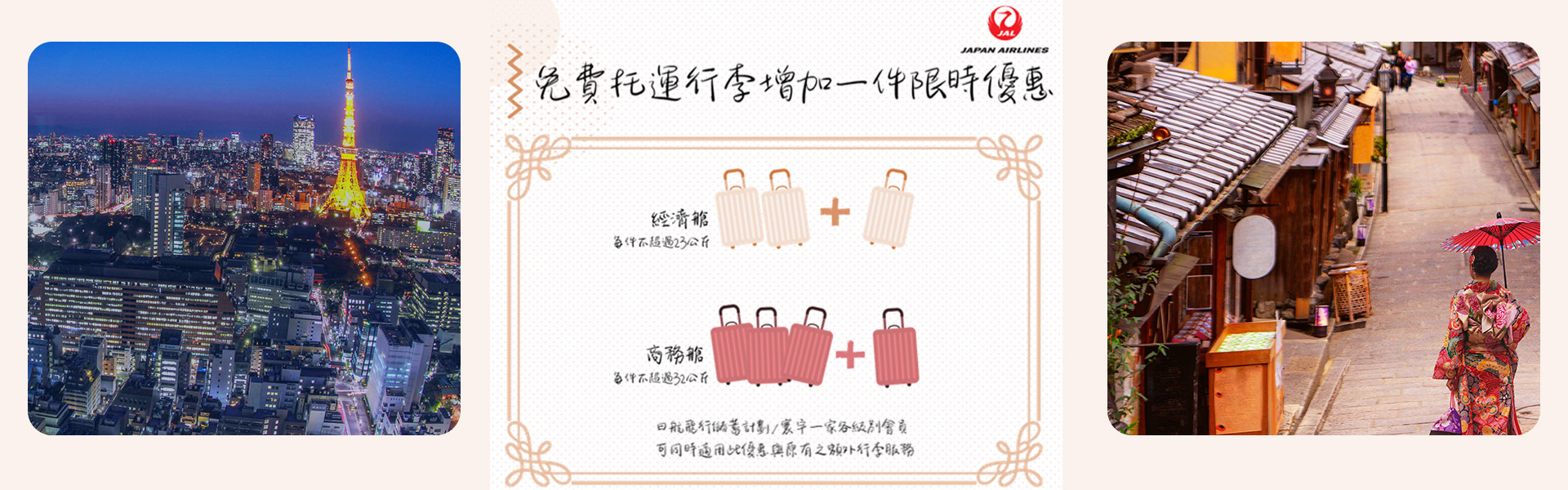 日本航空前往日本 美加 免費託運行李多一件限時優惠中