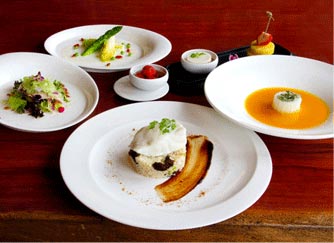 TheOne廚藝團隊相信減碳料理對環境的意義,每日費心挑選南園地區周邊的新鮮食材,更精心運用來自台灣各地特色小農的作物,搭配TheOne原創設計的餐瓷,像是一場豐盛的演出,一一體現生活之美,形成餐桌上另一幅美麗的南園風景,讓您體驗山中園林特有的品餚氛圍。