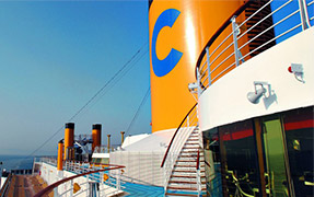 歌詩達郵輪船隊以鮮明的黃色調煙囪,搭配象徵企業標誌的英文字母C,航行所到之處總是引起人們驚艷的目光,在歐洲海域成為最燦爛耀眼的船隊,在亞洲地區更是一座眾望所託的海上城堡。