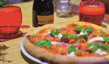 傳統木香烤爐的正宗義大利披薩,薄脆面餅裡的酸甜番茄和噴香拉絲的乳酪,到多樣義大利料理、冷切菜、湯品、自製沙拉等佳餚,豐富亞州美食滿足不同口味偏好。讓貴賓在視覺、味覺及聽覺三種享受的用餐環境中,享用純正義式美味。需付費,美金8.5元