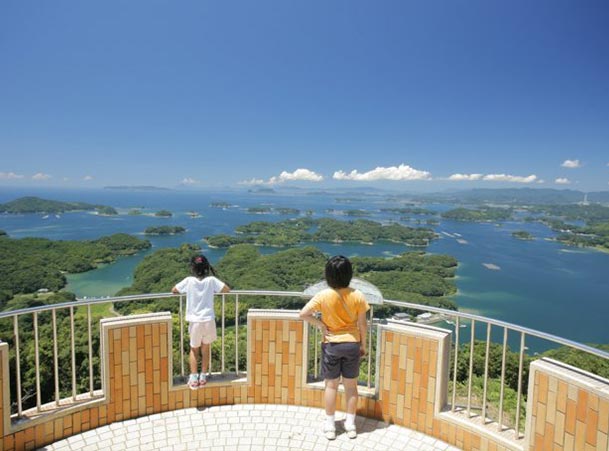 散落在長崎縣西部的北松浦半島西側的島嶼被稱九十九島,是西海國立公園的代表性景地。與大大小小170多個島嶼蜿蜒交錯的裡亞式海岸,在從佐世保到平戶延綿約25公里的海面上形成了自然美景。