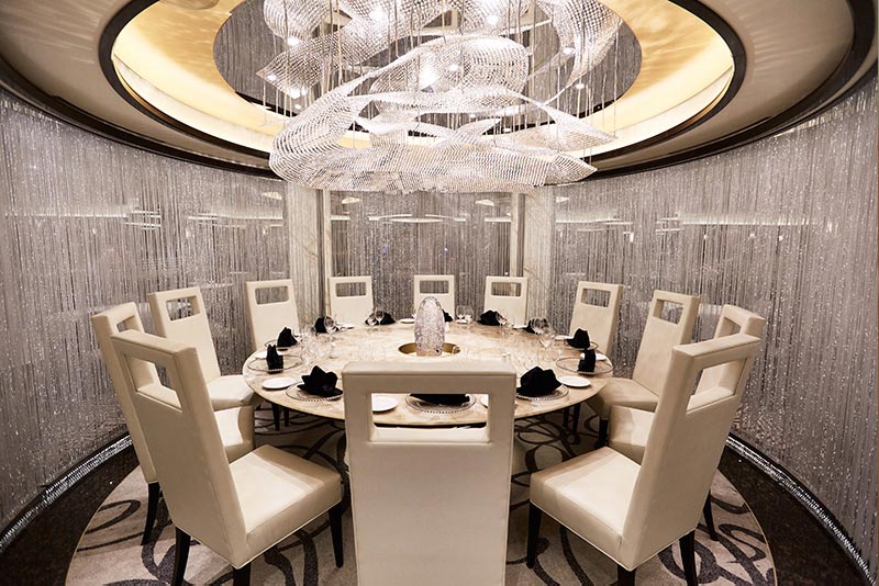 每航次限量24個嘉賓享用的精美佳餚,由行政總廚親自烹飪。與親朋好友就坐於光幕環繞的中央宴會桌,巧妙利用燈光幕簾裝飾,盡情享受美味與優雅的獨特氛圍,為賓客打造引人入勝的難忘用餐體驗。