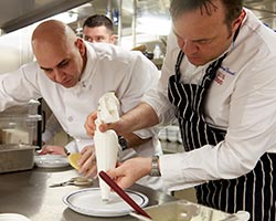 曾於2004年榮膺米其林廚師最高榮譽認證--「法國最佳工藝師」(MeilleurOuvrier de France) 。擁有自己的餐廳「Flocons de sel」,他本人更被米其林星級同仁選為「年度最佳廚師」。