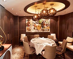 是首個在北美被授予米其林星級的中餐廳,由米其林粵菜大師Richard Chen掌廚并設計菜單。運用其獨特的創意和精湛的廚藝,而在船上獨家的就是松露油醋烤鴨沙拉,被評為最棒的開胃菜,充分地詮釋了粵菜的經典。一邊欣賞波瀾壯闊的海景,一邊在高端時尚的用餐空間中,享受米其林大師精心打造的盛宴。