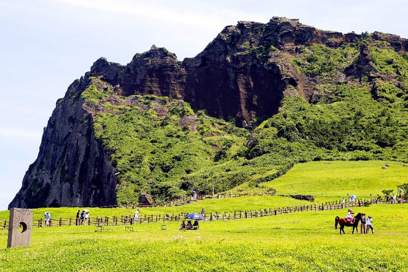 2007年被聯合國教科文組織指定為世界自然遺產。位於韓國濟州島東端的一個火山丘,也是世界最大的突出於海岸的火山口,海拔182米,由10萬年前海底火山爆發而形成。城山日出峰的火山口直徑達600米,深90米,面積達8萬多坪,是世界上少見的保存完整的海底火山丘。