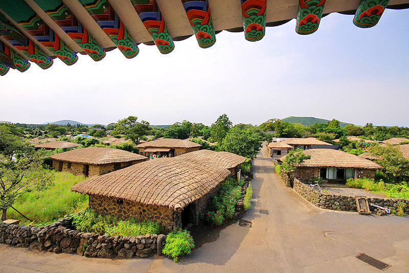 不是人造景觀,而是數百年承襲下來的生活全貌。目前留有約350棟的宅屋,被指定為韓國民俗資料保護區。以茅草覆蓋的屋頂,石頭疊砌的石牆,以及用《丁囊》取代門戶的民宅,濟州的古時模樣盡顯眼前,而至今仍有人在這裡居住生活,此處有濟州特有的土產:生蜂蜜、五味子茶、馬骨粉。