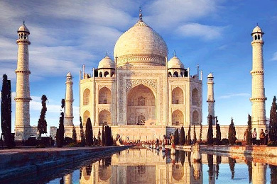印度詩人泰戈爾筆下「一滴永恆的淚珠」,這座驚世建築是印度蒙兀兒第五代君主:沙.賈汗對他心愛的皇后慕塔芝.瑪哈愛的見證,共花了22年時間,以白色大理石打造。1983年聯合國教科文組織將它列入文化遺址,融合印度、中亞、波斯等地回教風格,被譽為世界七大奇觀之一。