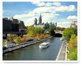 【渥太華 】 渥太華有近二百名方公里的綠色地帶,可說是一座不折不扣的花園城市,都會景觀與大自然風光融為一體。還有兩岸風景美麗如畫的里多運河,運河沿岸設有行人步道及自行車車道,秋季時遊客們可沿著運河河道,欣賞夾岸的楓紅或可乘觀光小艇漫遊運河上,最能品味這座現代化首都的迷人風光。距離渥太華市區二十分鐘的加提諾公園,是賞楓的絕佳景點之一。
