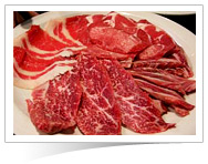如雪花般油花美麗的招牌無骨牛小排肉,是店家的招牌名菜,烤好的牛肉,要記得搭配店家特有的醃漬蘿蔔片一起吃,豐美的肉味與清甜的蘿蔔,簡直就是人間美味阿!