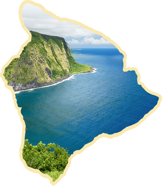 夏威夷大島是夏威夷群島中的最大島嶼,位於群島最南端。全島有豐富的火山活動,設有火山國家公園,又稱火山島。島上呈現氣候多變的樣貌,綠色熱帶雨林,火山沙漠和白雪皚皚的山峰和美麗的黑沙海灘等奇景都會在此地找到。主要都市有希洛與科納市,可欣賞瀑布、雨林和植物園,及探索海岸週邊美景。