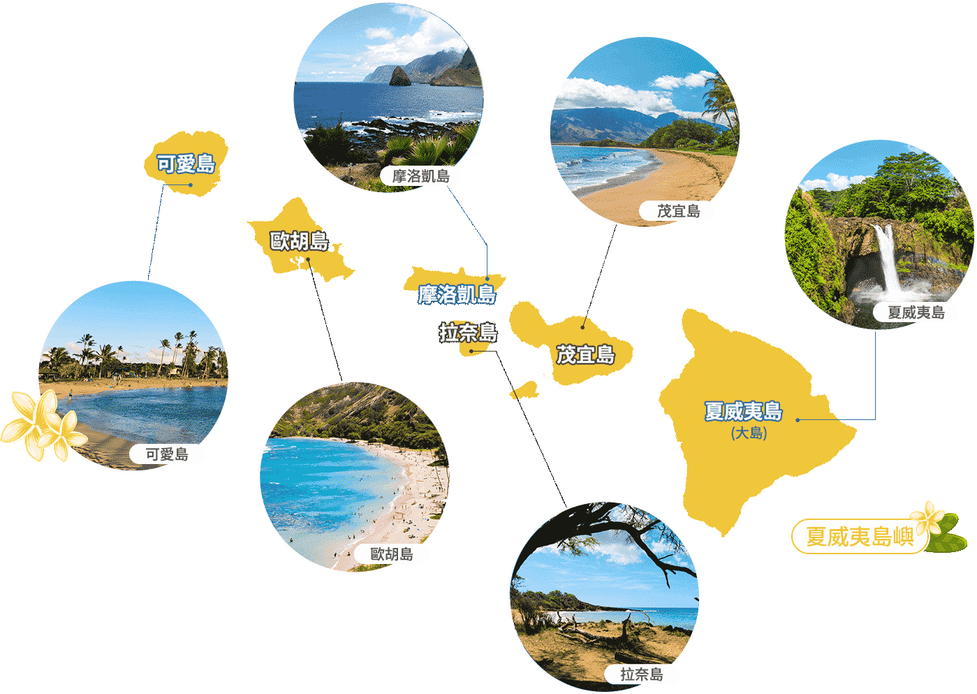 摩洛凱島是夏威夷的第五大島,幾乎一半的人口都是夏威夷土著,這裡保留了夏威夷的原始風貌,美麗原始的海岸線、未開發的荒野,遠離塵世喧囂。房子比椰子樹要矮,也沒有交通和交通燈,延續與夏威夷歷史傳統的聯繫,也可享受從游釣到騎騾旅行等戶外探險活動,以及帕波哈庫沙灘 – 夏威夷最大的白沙灘之一。