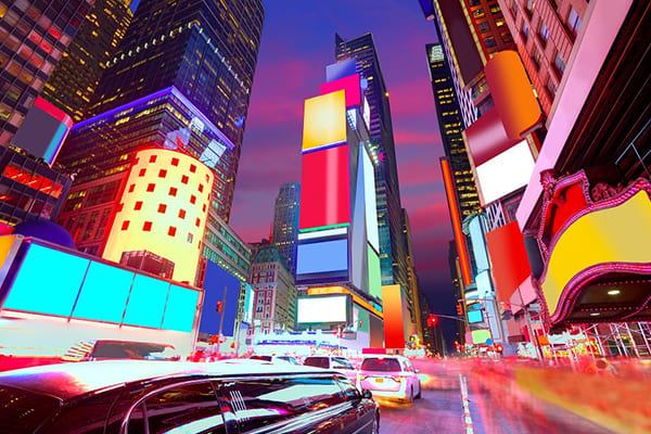 又稱為「世界十字路口,位於曼克頓市的心臟地帶,附近聚集了近四十家百老匯歌舞秀劇院,加上多間大型電影院,是繁盛的娛樂及購物中心。