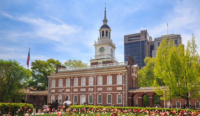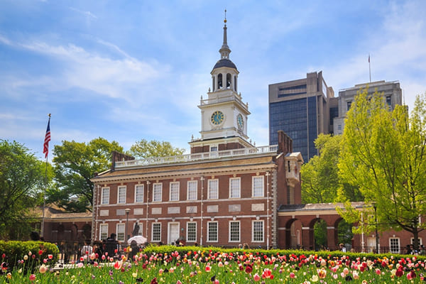 一座傳統的兩層喬治亞式紅磚樓房,在這座樓房裡,誕生了《獨立宣言》和憲法。這裡還曾經是美國獨立戰爭的指揮中心,現今成為美國歷史文物建築,被命名為獨立宮。