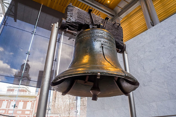獨立廳附近的一口大銅鐘-自由鐘是美國獨立的象徵。當年美洲的13個殖民地宣布脫離英國統治,就曾敲響了這口大鐘。1776年7月4日,伴隨著洪亮的鐘聲,《獨立宣言》首次在此公諸於世。1783年4月16日鐘聲再起,宣告美國獨立戰爭勝利。