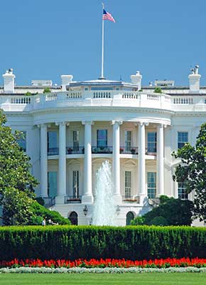 美國總統府所在地,與高聳的華盛頓紀念碑相望,北面是白宮的正門,進門後是大理石結構的門廳,顯得氣魄宏大,寬敞、明亮。