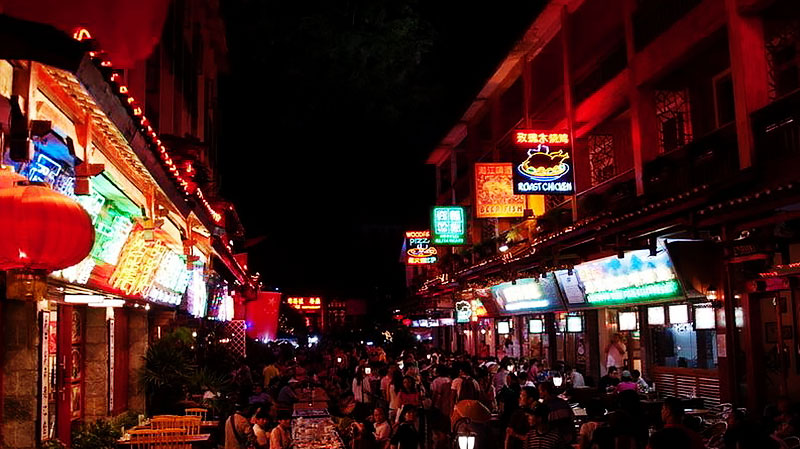 不到一公里的陽朔西街,位於縣城中心,全長517米,寬8米,大理石路面,呈彎曲的S形,房屋建築古色古香,地方特色濃厚。薈翠各種旅遊紀念品、小吃於街市。其充滿了異國情調的夜景更是風情萬種,風俗濃鬱。