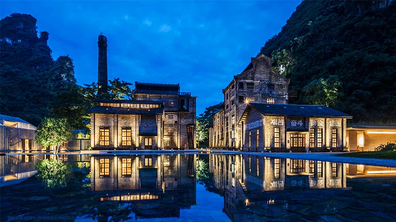 位於陽朔灕江岸邊,坐擁以人間天堂著稱的山水美景,當地獨特的喀斯特熔岩地貌將連綿青山和河流舒展成水墨長卷,成為極美避世聖地。更是一座帶著六十年歷史印記的老糖廠,被現代的設計語言詮釋為雋永的度假酒店。