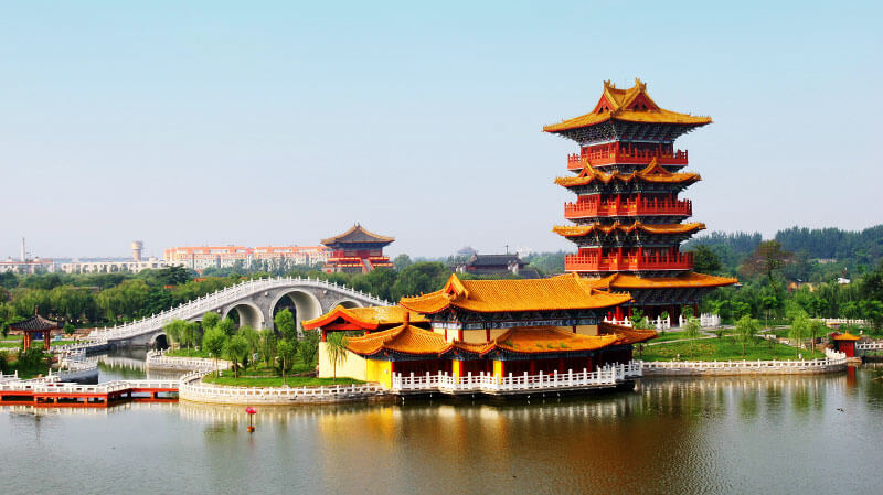 清明上河園座落於開封城風光秀麗的龍亭湖西岸,是一座大型的宋文化主題公園,這是以北宋著名畫家張擇端的傳世之作《清明上河圖》為藍本建造的,再現東京開封繁華景像。《清明上河圖》反映的是中國北宋時期作為首都開封的社會生活、市井風情和城建格局。一千多年,張擇端將它由現實搬進了畫卷裡,一千多年後,開封人又將它從畫卷搬進了現實。