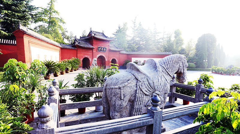 白馬寺建于東漢,相傳為佛教傳入中國後興建的第一座寺院,被尊稱為中國佛教第一寺。其中大雄寶殿是全寺的主殿,規模宏偉,殿內所存的三世佛、二天將、十八羅漢像都是元代作品,造型逼真,是佛教藝術的珍品。每年舉辦的白馬寺鐘聲迎新年活動都吸引眾多的旅客參與。