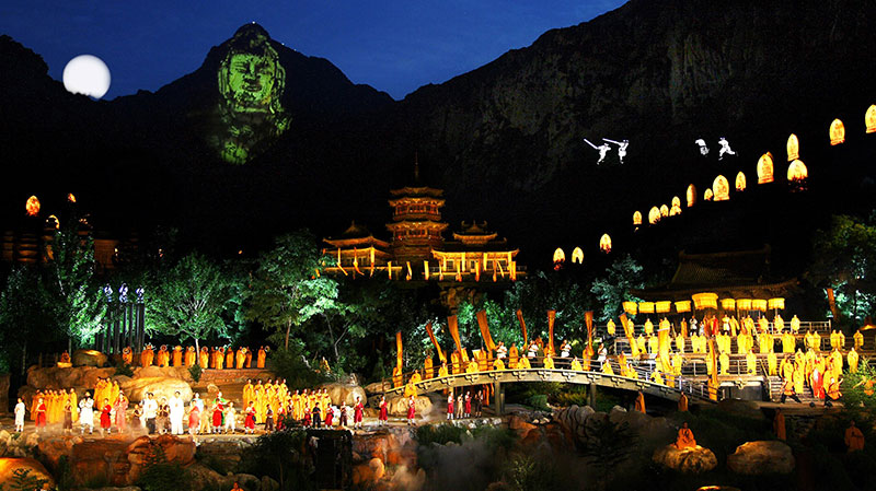 是全球最大的山地實景演出,以少林、禪宗文化內涵為背景,近600人的禪武演繹,以音樂、舞蹈、武術為載體,運用獨到的創意和現代科技手段闡釋中國傳統文化,成為中原文化旅遊的一大亮點。舞台最高處有1400米,有世界上難度最大、飛騰最高的真人武打表演,讓您在山谷中,聽著泉水,吹著山風,愜意的享受一場音樂盛宴。