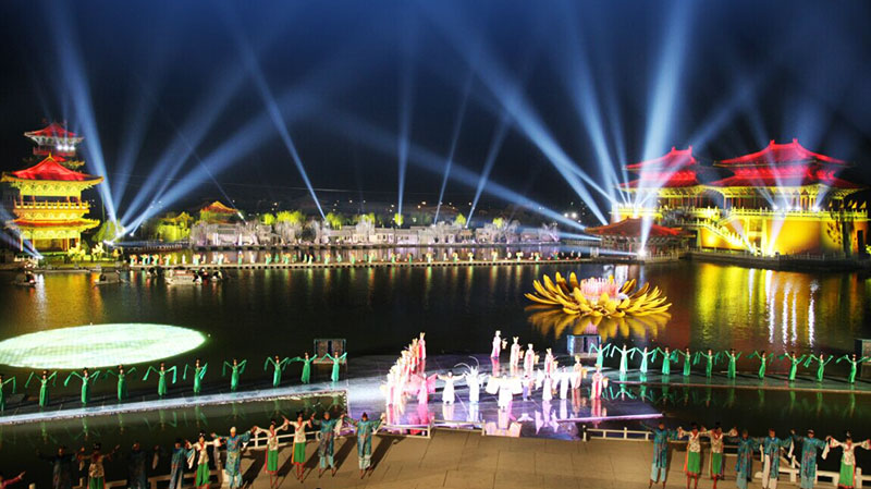 大唐芙蓉園是中國第一個全方位展現盛唐風貌,建築面積10萬平方米,擁有全球最大的水景表演。在此可觀賞道地的高蹺表演、秦腔表演、皮影戲表演;欣賞《夢回大唐》歌舞表演,感受現代唐風樂舞登峰造級的精粹;還有水幕電影《齊天大聖》由三塊扇形水幕組成,讓觀賞者體驗絕無僅有的開放式水景意境。