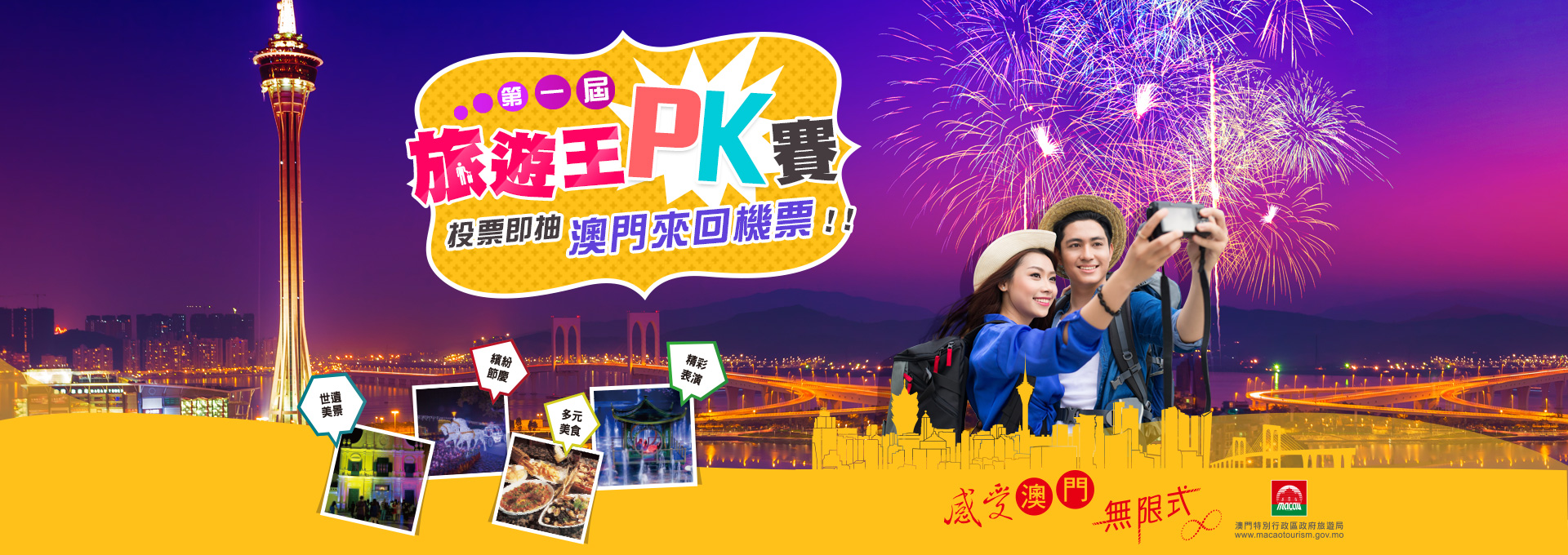 位在澳門南灣新填海區的澳門旅遊塔,是澳門著名的地標,塔高338公尺,是一座集合觀光、娛樂、餐飲及購物的綜合娛樂設施,除了可以360度鳥瞰澳門的美景之外,還有多項讓人心驚膽跳的活動,像是笨豬跳等,喜歡剌激的人絕對不能錯過哦!
