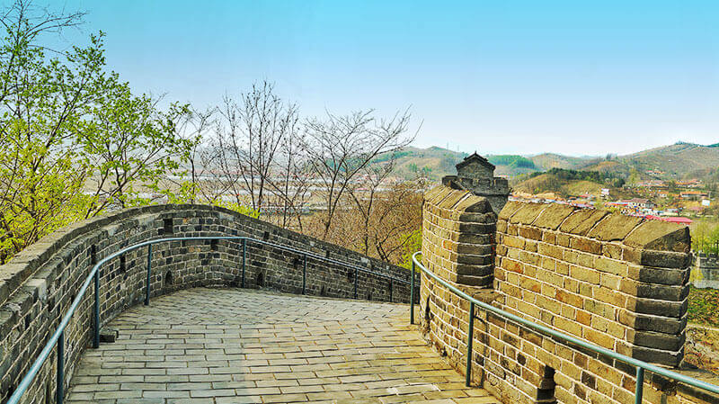 虎山長城是明長城的東部起點,位於鴨綠江畔,與朝鮮隔江相望。景區內主要有虎山長城、中朝邊境“一步跨”、睡觀音、長城歷史博物館、古棧道遺址等28個景點。峰頂是明長城的第一個峰火台,站在峰火台上環顧四周,朝鮮的新義州、丹東的馬市沙洲和連接丹東與新義州的鴨綠江大橋清晰可見。