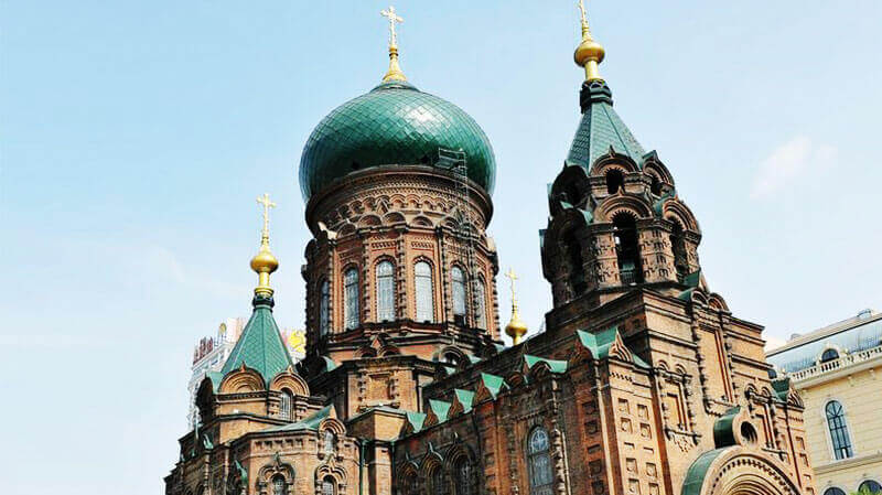 是遠東地區最大的東正教堂,也是拜占庭式建築的典型代表,目前為哈爾濱市建築藝術館,長期有藝術展。教堂內裝飾十分華麗,牆壁繪著多彩圖樣,而圓頂四周的十六面高窗,形成「洋蔥頭」式的穹頂,呈現巍峨壯美的肅穆姿容,也構成了哈爾濱獨具異國情調的人文景觀和城市風情。