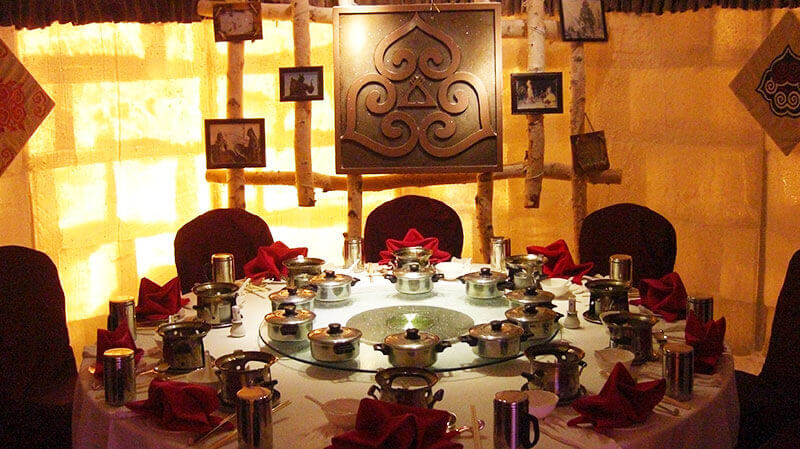 由晶瑩剔透的冰打造成的冰屋;彷彿走進童話故事中的場景。 零下15度的冰屋白霧環繞,穿著厚重羽絨外套,吃著暖呼呼 的火鍋;在寒冷的冬季,體驗不一樣的火鍋吃法。