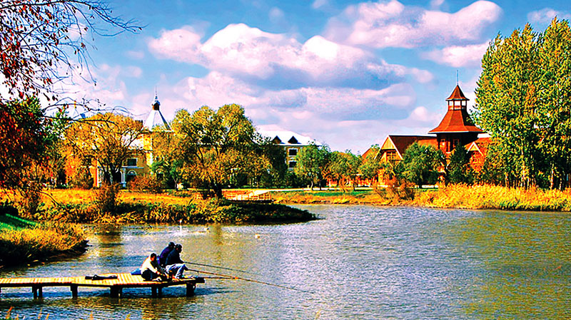 以俄羅斯18世紀末的老建築為原型建造,抵達後經幸福橋,欣賞伏爾加河兩岸風光,觀巴普洛夫城堡,遠眺俄式洗浴巴尼亞外觀,參觀莊園標誌性建築《聖尼古拉教堂》,普希金沙龍看攝影作品展,經文化雕塑公園、小白樺餐廳、觀奧爾洛夫馬房、小夜鶯咖啡廳,遠眺克里姆林宮微縮景觀,看夢幻般的凡塔基亞俱樂部,等米尼阿久爾餐廳頂層觀賞莊園全景。