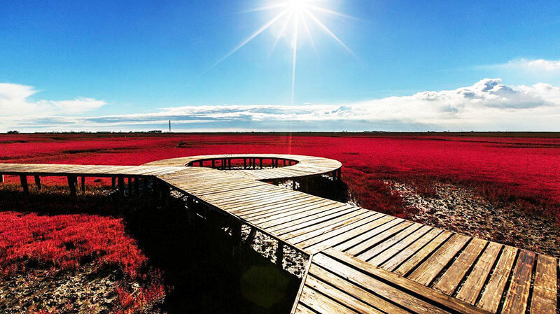 位於遼寧省盤錦市紅海灘濕地旅遊度假區,總長度約為18公里,以舉世罕見的紅海灘為特色,是由一種叫做鹼蓬草的植物所形成的世界奇景。在春夏時節,紅綠相濟;秋冬時節,金紅相映。被稱為世界紅色海岸線、中國最精彩的休閒廊道和中國最浪漫的遊憩海岸線。