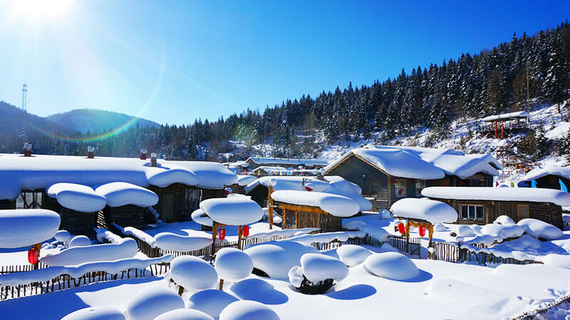 中國降雪量最大的地區之一,這裡每年十月瑞雪飄飄,冬季積雪厚度可達2米深,雪質優良,雪量豐富。從初冬冰花乍放的清晰到早春霧淞涓流的婉約,無時無刻不散發著雪的神韻,擁著層層疊疊的積雪,百餘戶的居民區猶如一座相連的「雪屋」,房舍隨物具形的積雪在風力的作用下可達1米厚,有中國合掌村美譽。