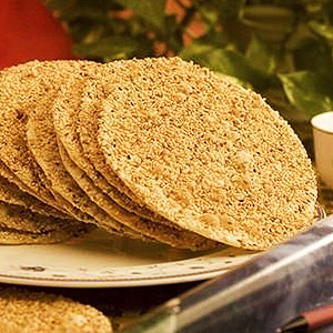 淄博名產之一,究「薄、香、酥、脆」,吃起來只能用:「一口酥,二口脆,三口芝麻墜」來形容,分為甜鹹兩種,到周村還可以觀賞到製餅技術。