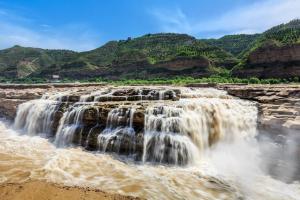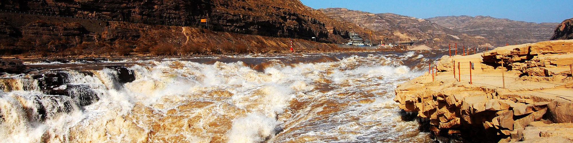 不觀壺口大瀑布,難識黃河真面目 黃河流經晉陜峽谷時,河岸寬度由原來的5百公尺縮減為2~3百公尺,流到壺口段時,河道突然減為50公尺,河床又跌落近20~30公尺低的深潭,河水頓時如沸騰的滾水般,排山倒海而下,如萬馬奔騰,如雷貫耳、氣勢逼人。