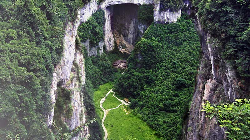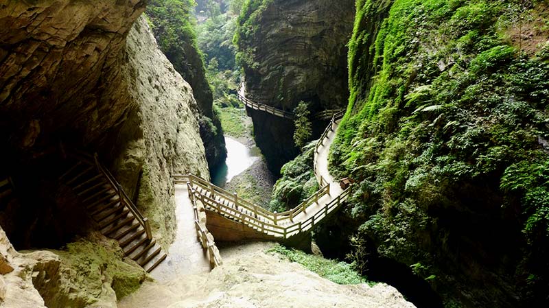 位於武隆縣仙女山鎮境內。一座典型岩溶峽谷地質奇觀,峽谷長5公里,谷深200-500公尺,俯瞰深邃不見其底,谷寬1-10米,由入口地縫、中途穿洞、出口地峽三段組成。兩岸刀壁聳屹,仰頭望天一線。