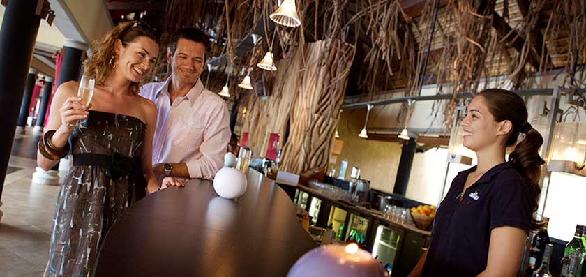 座落於度假村絕佳的地點,吧台在白天圍繞舒適氛圍,到了晚間時分,燈光在礁湖上倒映粼粼波光,滿溢浪漫輕鬆的氛圍。