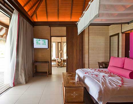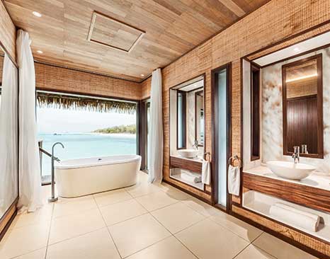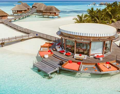 在椰子樹蔭下的Iru主吧台坐擁礁湖景緻,土耳其藍的碧水佳景盡收眼底。位置靠近Kandu餐廳,全日無限提供各式飲品及輕食。 由柚木搭建的Sunset日落沙灘吧台緊鄰泳池,提供俯瞰豪華水上屋的絕佳視野,於傍晚和晚間開放,讓您體驗沐浴在夕陽西下和滿天星斗的浪漫氛圍。