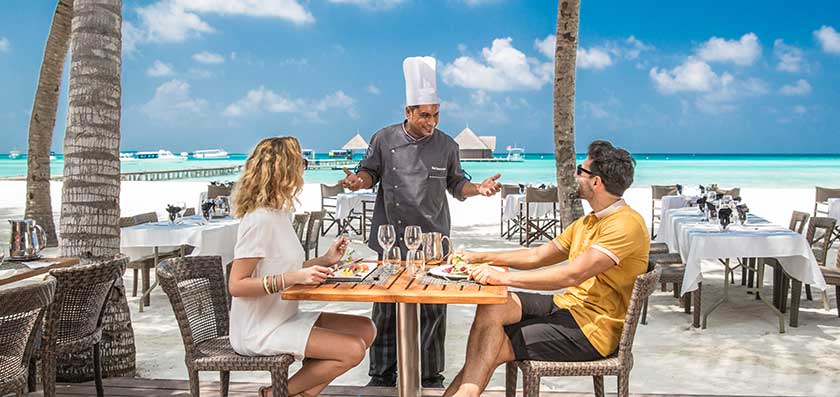 享用沙灘浪漫晚餐,用美食美景為假期增添夢幻色彩。