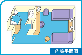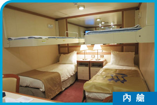 Inside Cabin 艙內備有電視、冰箱、衣櫥、浴室(附淋浴設備)。