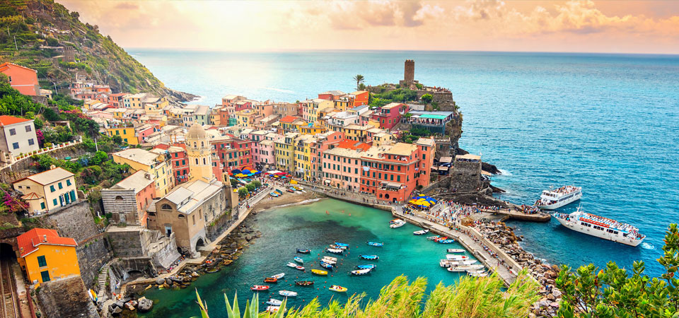 有著義大利人最引以為傲的海岸風光,如世外桃源之地的「五漁村」,由蒙泰羅索、韋爾納扎、科爾尼利亞、馬納羅拉及里奧馬焦雷這五個村莊組成。色彩斑斕的建築沿著山坡走勢而建,海天交融的美景,連國家地理雜誌都讚嘆的美,直到上個世紀這裡依然遠離塵寰、遺世孤立。