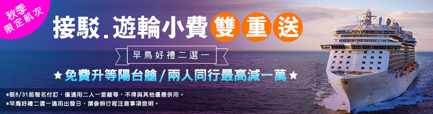 更多海上航程時段,皆收錄在藍寶石公主郵輪專頁。