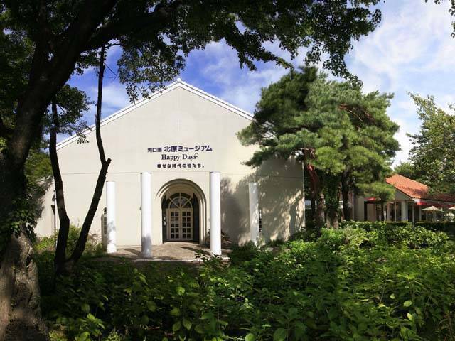位於河口湖畔的白色建築物,裡面展示著各樣鐵製玩具、稀有玩具、雜誌、黑膠唱片等約8千種北原照久的收藏品。