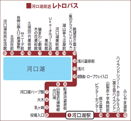 從河口湖站搭周遊復古巴士約16分鐘