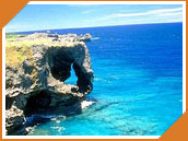 萬座毛:是代表沖繩的名勝景觀之一。突出在東中國海的萬座毛,因海浪長年侵蝕,石灰岩的懸涯峭壁形成了遠看猶如象鼻般的獨特造型。高20米的懸涯上的寬闊地帶天然矮草叢生,是日本的國定自然公園。周圍野生植物群,還被指定為沖繩縣的天然紀念物。