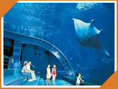 海洋博公園:「沖繩美之海水族館」號稱世界第一、水噸位第一、魚種類多第一、水槽厚度第一、鯊魚種類之多世界第一、以及世界上第一次在水族館內人工飼養自然珊瑚,總計有魚類精華650種,75000尾各種奇魚展示供您觀賞。共計四層樓,可以讓你全覽沖繩沿海的水中生物。 |